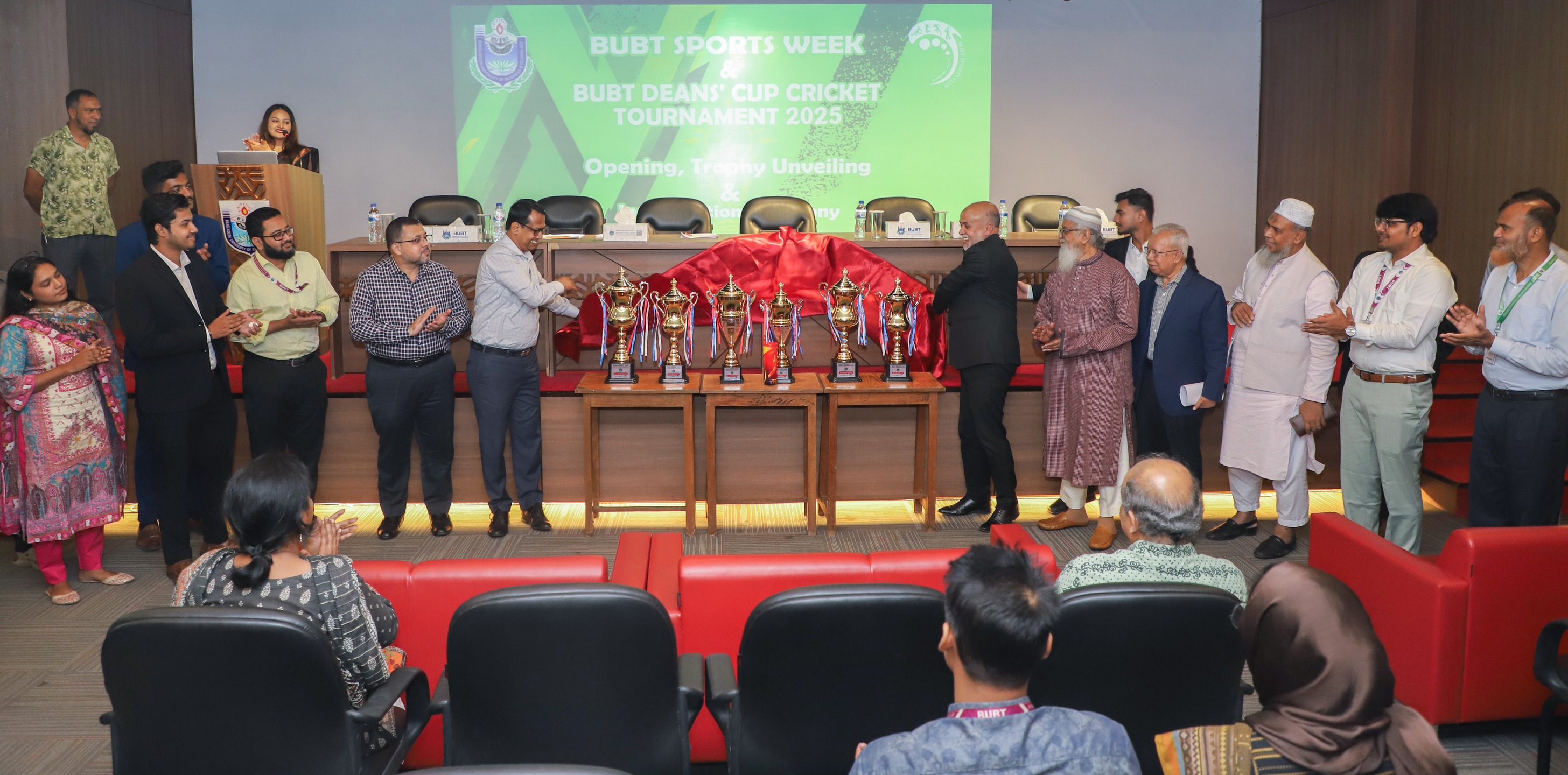 The opening and trophy unveiling ceremony of BUBT Sports Week & BUBT Deans’ Cup Cricket Tournament 2025 was held on Wednesday, October 8, 2025, at the BUBT International Conference Hall. The week-long sports festival is set to officially commence on October 11, 2025, bringing together