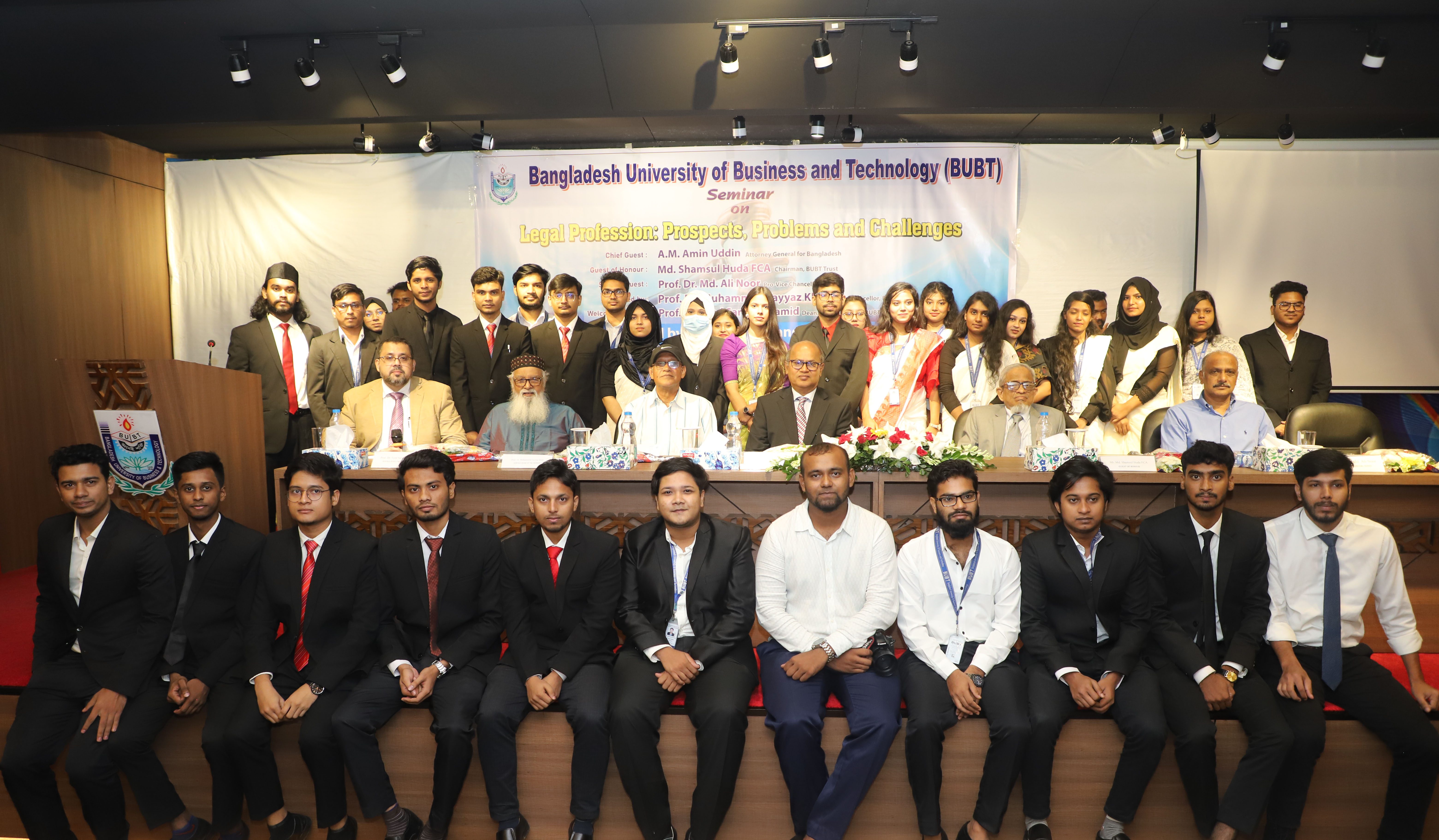 Department of Law and Justice organized a seminar titled “Legal Profession: Prospects, Problems and Challenges” on 14 September 2022 at 2.30 pm at International Conference Hall, BUBT. A. M. Amin Uddin, Attorney General for Bangladesh has glorified the seminar as the Chief Guest. Md. Shamsul Huda FCA, Chairman of BUBT Trust graced the seminar as the Guest of Honor. Prof. Dr. Md. Ali Noor, Pro-Vice Chancellor attended in the seminar as the Special Guest. The Chair of the session was Professor Dr. Md. Fayyaz Khan, Vice-Chancellor of BUBT. Prof. Dr. Syed Sarfaraj Hamid, Dean, Faculty of Law and Chairman, Department of Law and Justice, BUBT cordially welcomed to all the respected guests as well as valued invitees and gave his best efforts to make the program successful. A. M. Amin Uddin, Attorney General for Bangladesh mentioned in his speech that “Lawyers are working to ensure the rights of common people of the society and for performing this prestigious job they should prepare themselves with hardworking, continuous study and there is no alternative of study for being successful in legal profession”. This program was a wonderful initiative to bring light upon the challenges and obstacles in the path of success in Legal Profession with an attempt to discover new opportunities too.